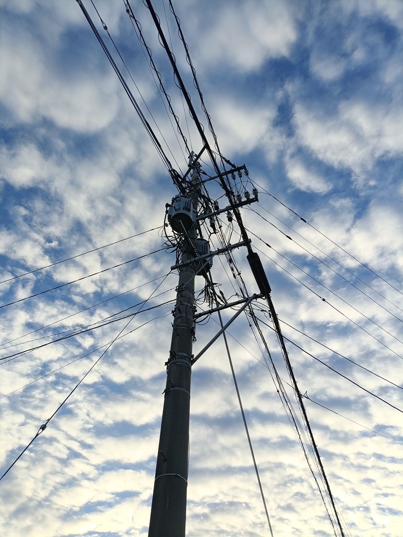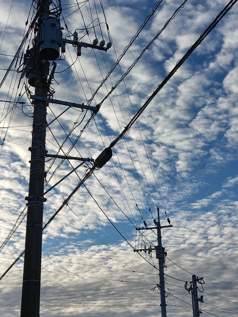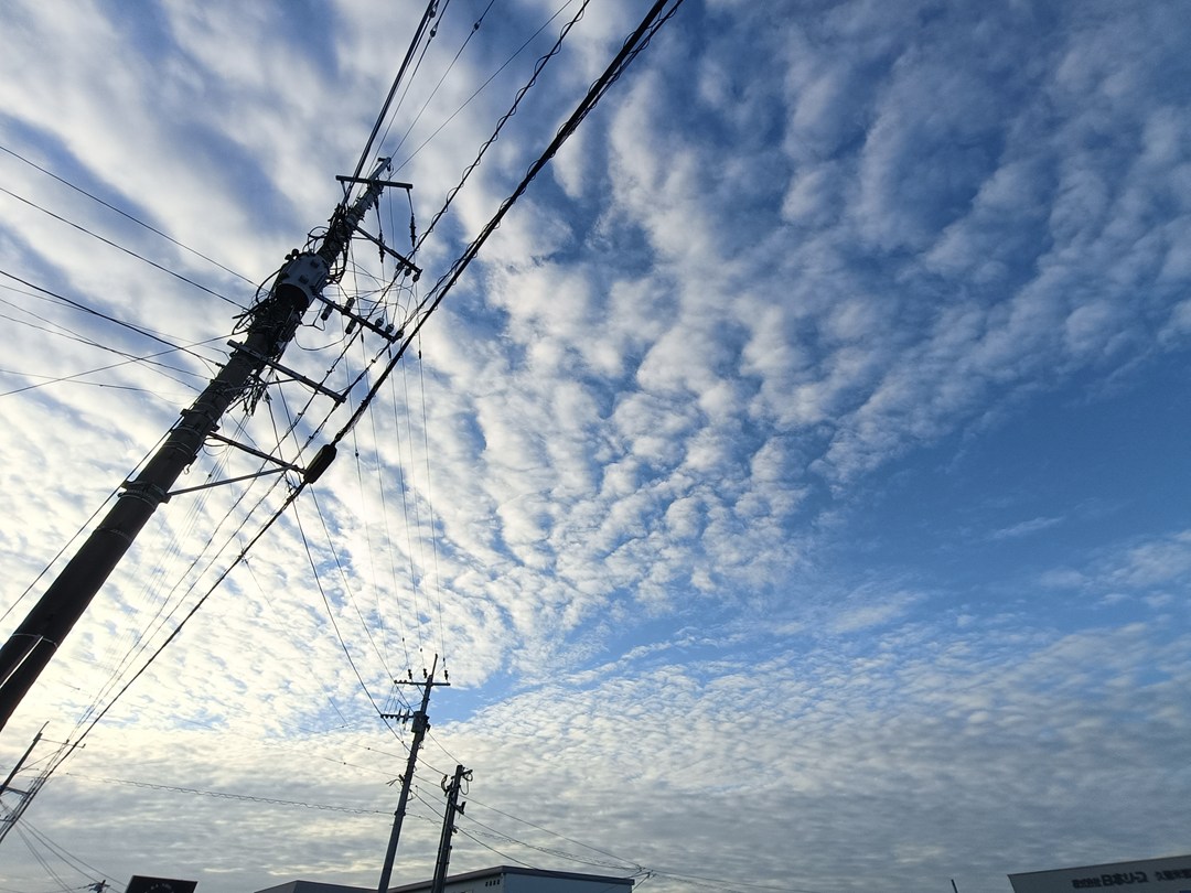 ボール盤をカッコ良く撮ってみた。朝の、鱗(うろこ)雲
