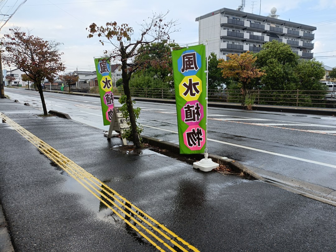 旗は、後ろから撮ってますが・・・「風水植物」と書かれてる!?