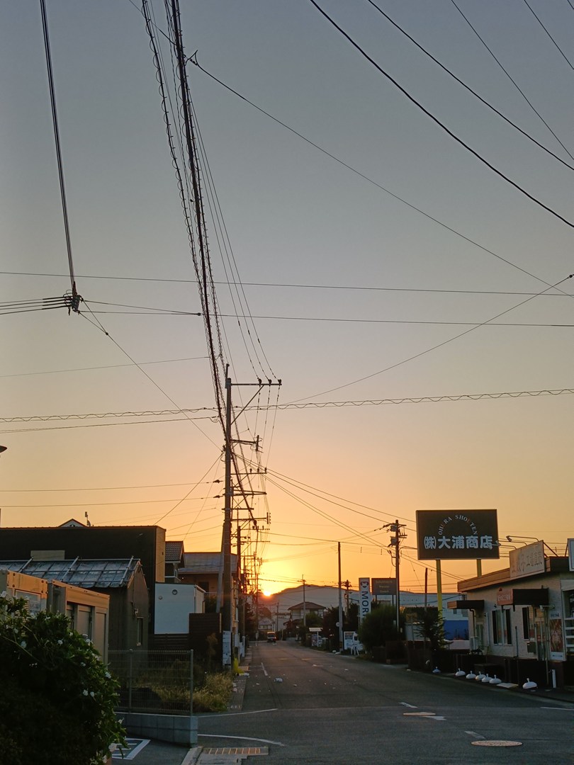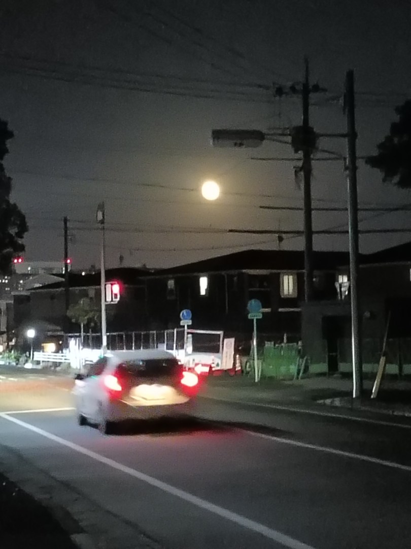 愛犬との散歩時間は、夏を過ぎたら もう真っ暗です。正面、低い位置に月が明るく見えてました。