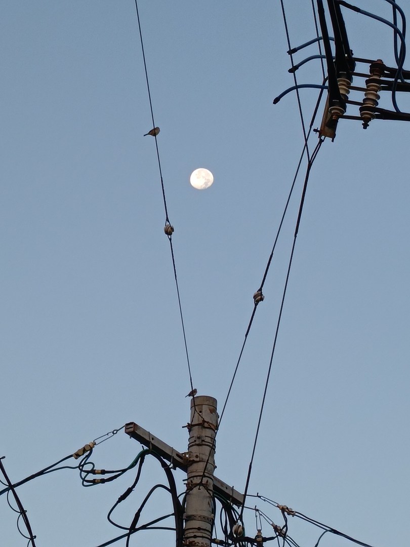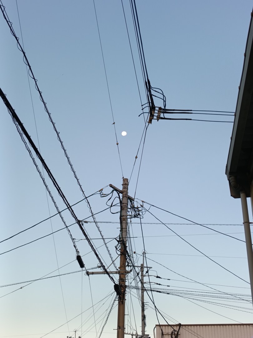 昨日の夜に見えていた月は、まだ隠れてません。西の空の、あの辺にまだ居ます。