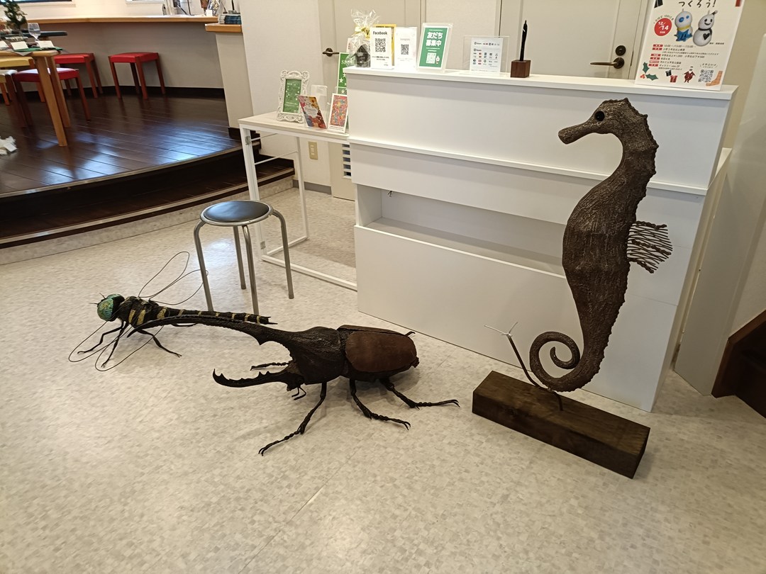 この、カブトムシ、トンボ、タツノオトシゴを作られた、Mさんは、↓