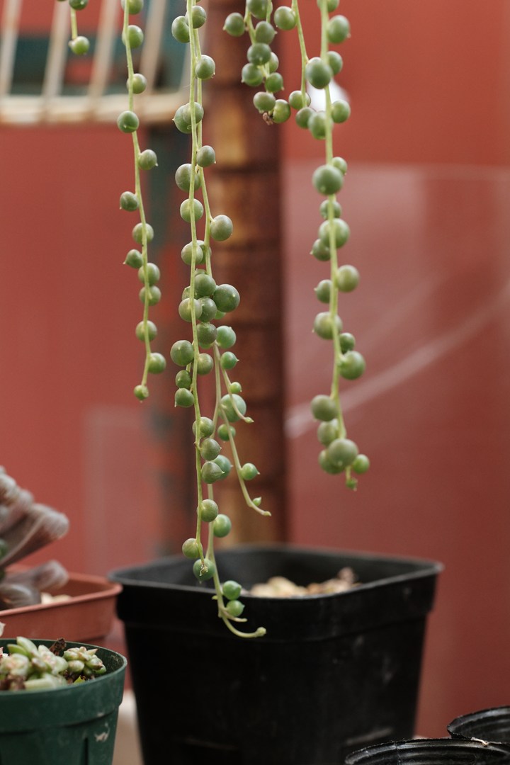棚から飛び出して垂れてるグリーンネックレス サボテン 2025.12.01 2025.11.24 グリーンネックレスが、良い感じで垂れて行ってます。 ハオルチア 株分けしたサボテン。三兄弟!みたいな感じで。笑 若緑 猿恋葦(サルコイアシ)