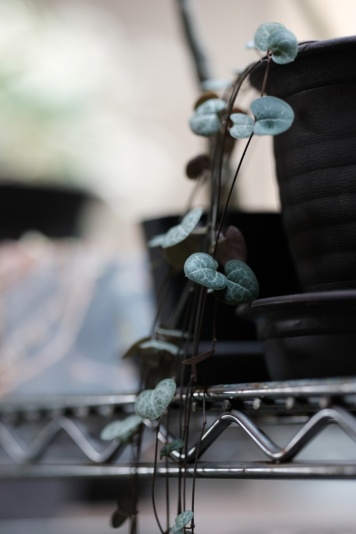 このハートカズラ。棚の上に置いているんですが・・・垂れ下がって、地面についてしまってます。凄い成長力ですね。