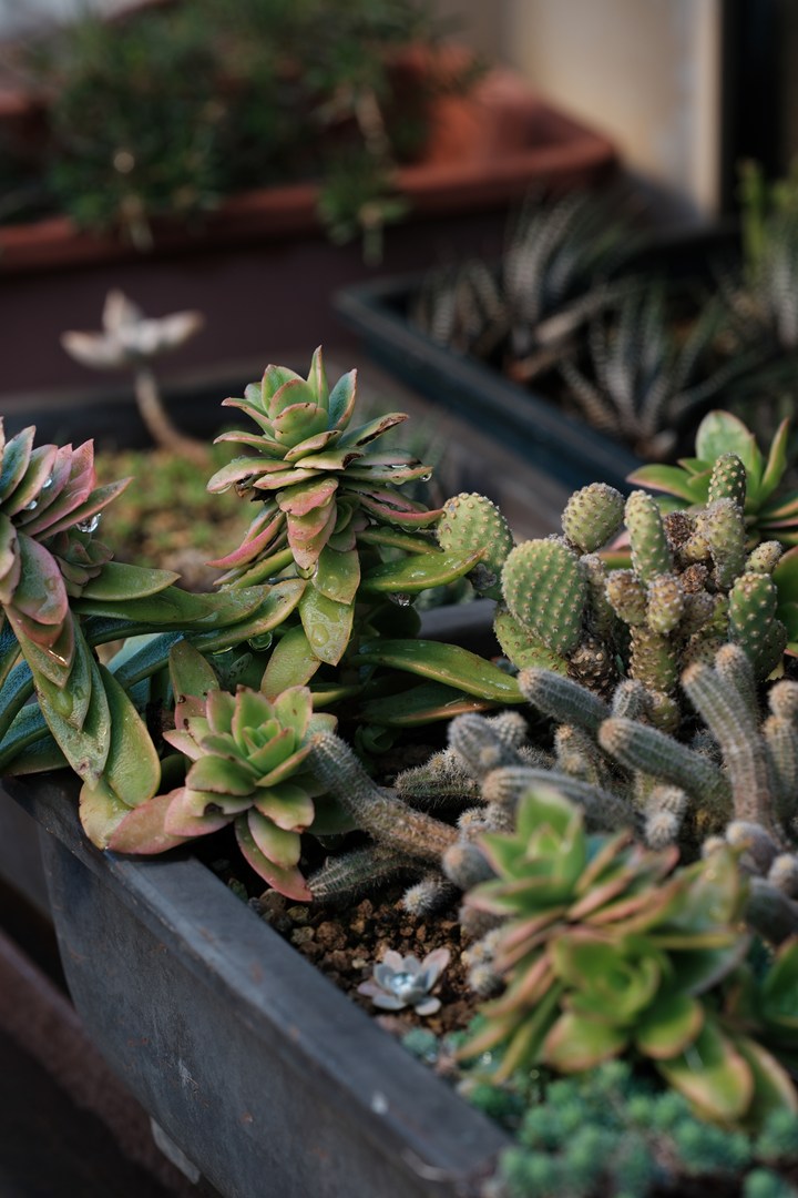 火祭りの小さくて白い花 アロマティカス 2025.11.13 2025.10.30 小さい花が可愛らしいです。 子持ち蓮華、不死鳥、若緑、真ん中の太い茎の名前は・・・何だったっけ。。。寄せ植え的鉢になってる。 右にはアロマティカス。 不死鳥 サボテンと火祭り