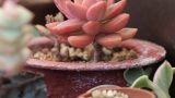 長梅雨でジュレだした。 多肉植物 2023.08.09 2023.7.23 この頃、長梅雨で多肉の葉っぱがジュレたり落下したりしてきた頃。 ピンクプリティの葉っぱも、少しジュレ出してた。 ジュレてる子を見ると、可哀そうで。可哀そうで・・・