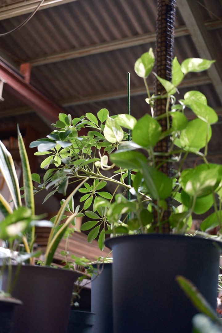 事務所で管理していたけど、大きく育ってきて、葉っぱを広げだして、少々邪魔になってきた(狭くなってきた)ので、工場の方へ移動させた。