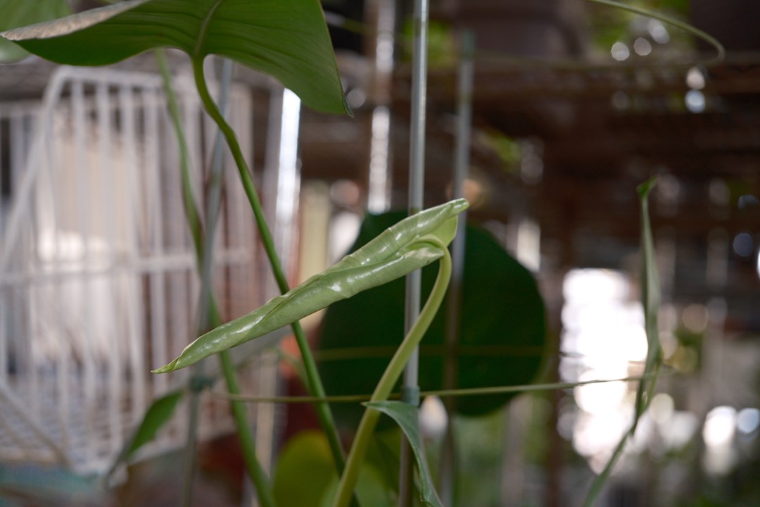 モンステラの新葉。グルグル状態。