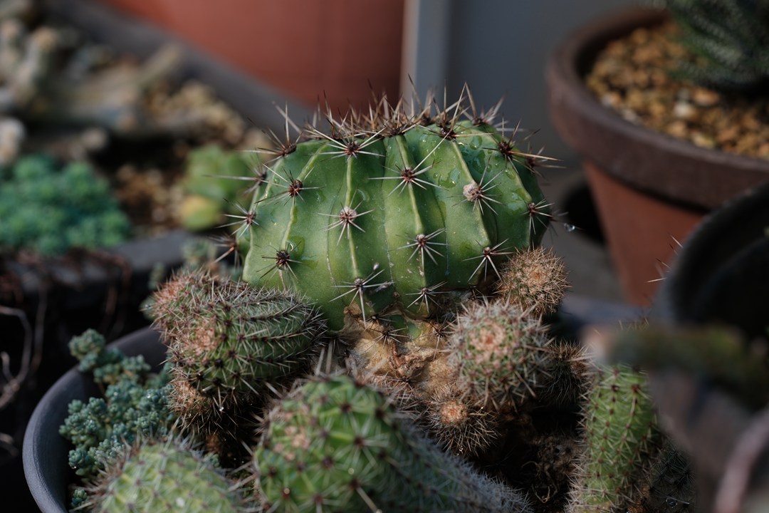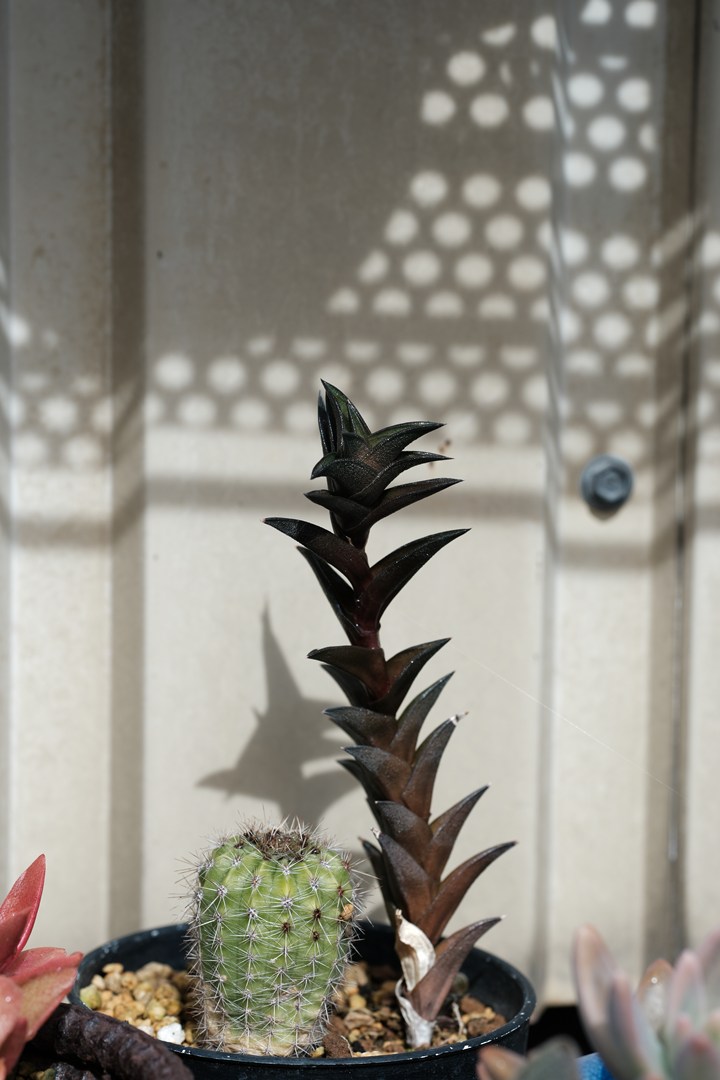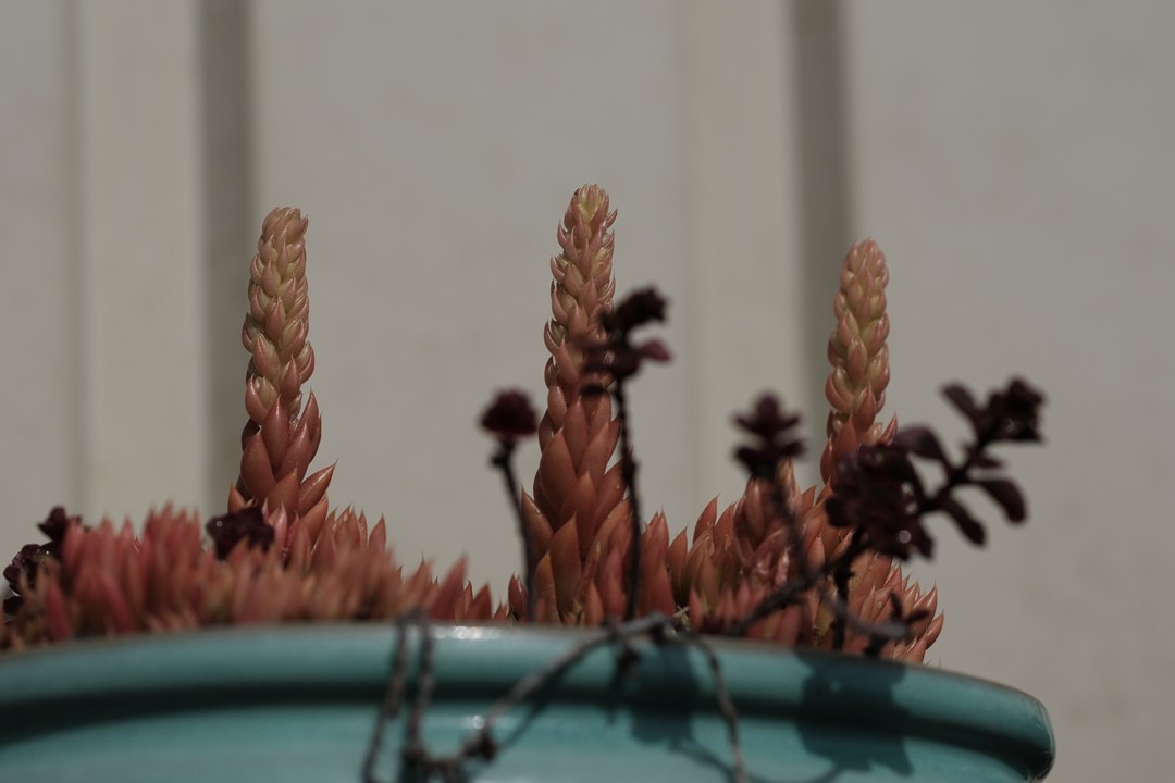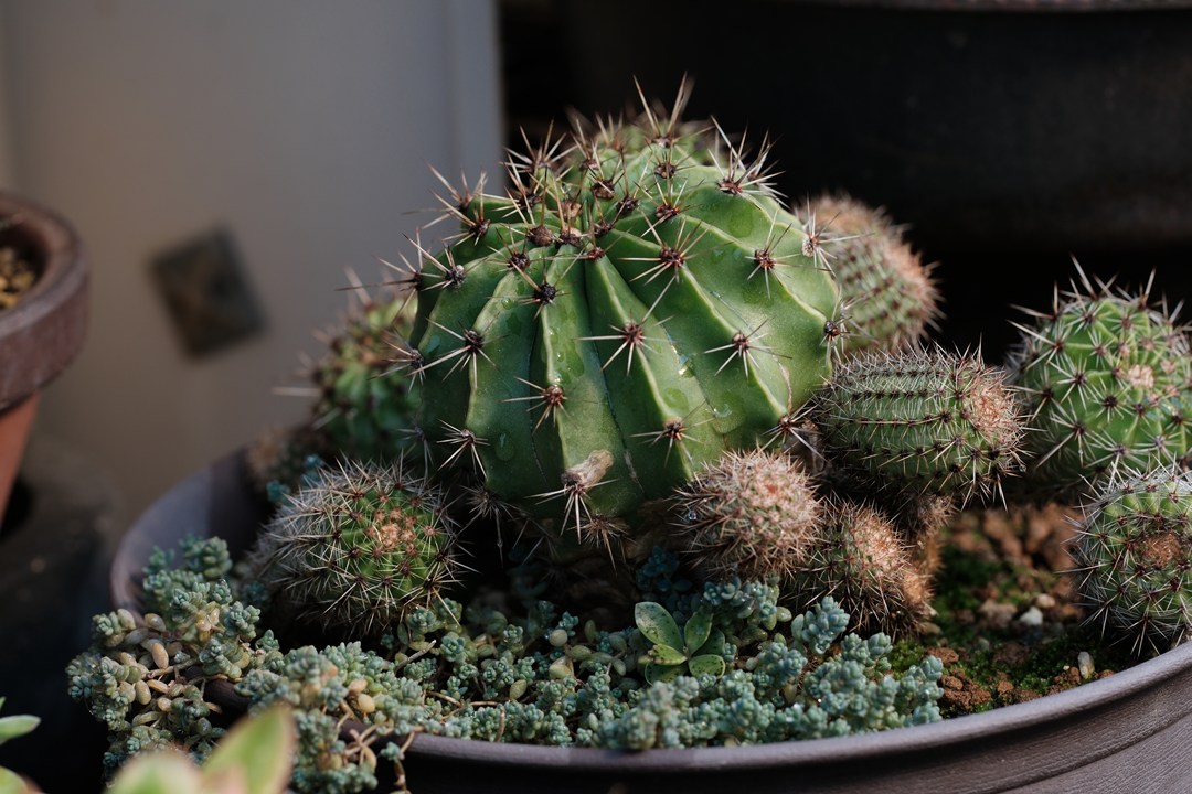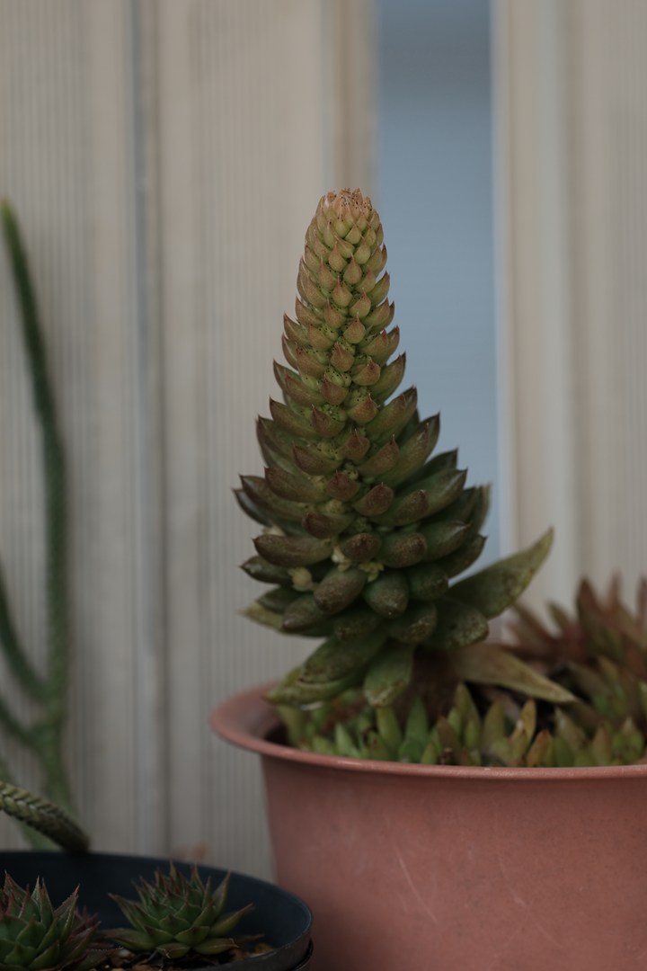 屋外の半日蔭くらいの場所のサボテン君 サボテン 2025.11.11 20205.10.30 サボテンと、セダムの寄せ植え。どこから来たのか?不死鳥がチラッと、サボテンとセダムの相中に見える。 反日蔭管理の十二の巻 子供が!結構増えてる!多肉植物を育てだした頃は、十二の巻がこんな感じで子供を見つけたら、株分けしてたけど・・・最近は、放置状態。これから、どういう感じで育って行くのか!?を楽しんでる。 十二の巻の花。 花も、多肉植物を始めた頃と違って・・・花を見つけたら、植物が体力を奪われて弱るので、最近こんな感じになってきたら、切ります。 ツメレンゲ(爪蓮華)