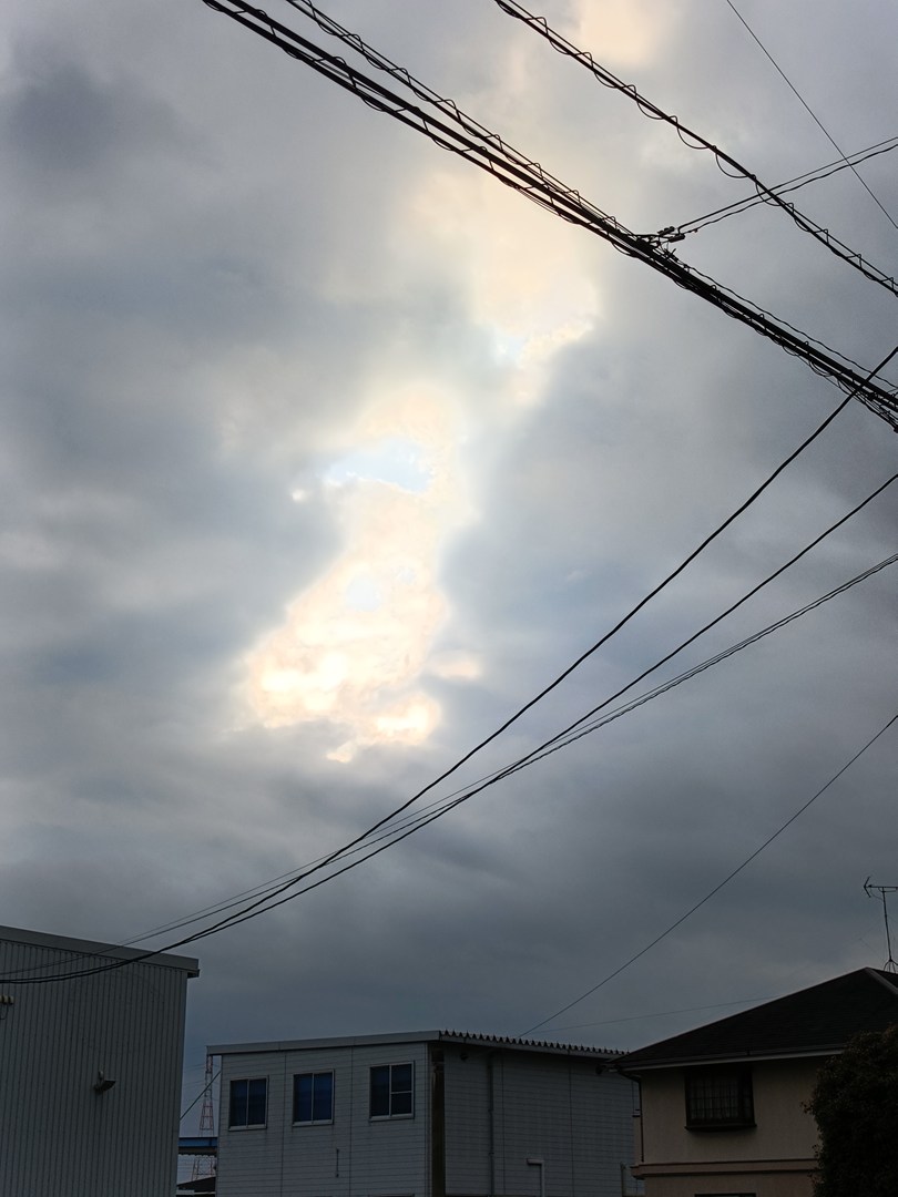 夕方、工場へ戻ると。西の空の方で、雲が割れている所がありました。
