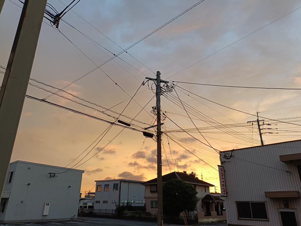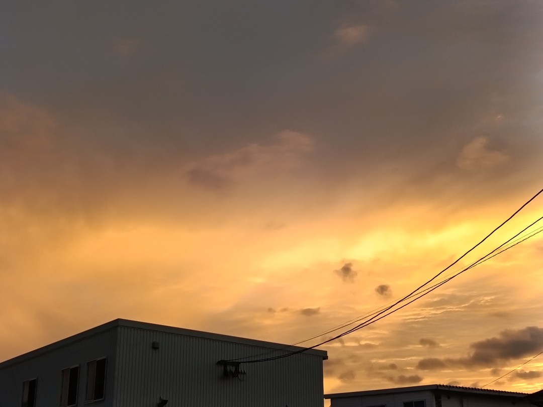 丁度、17時頃の西の空。うっすら焼けてきてますね。