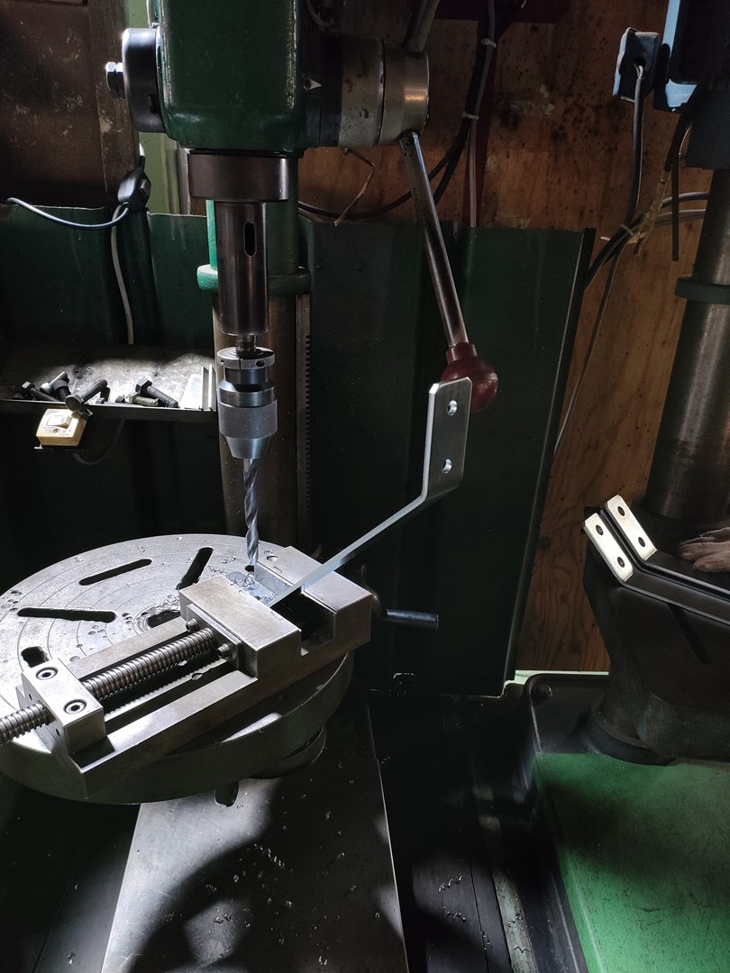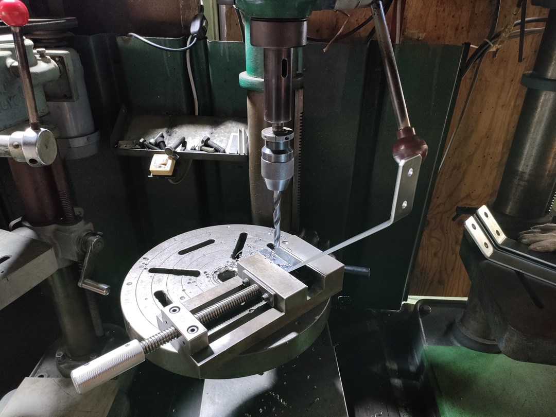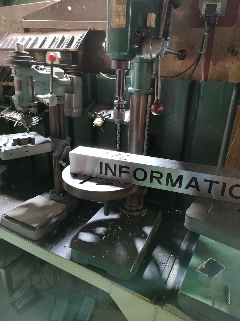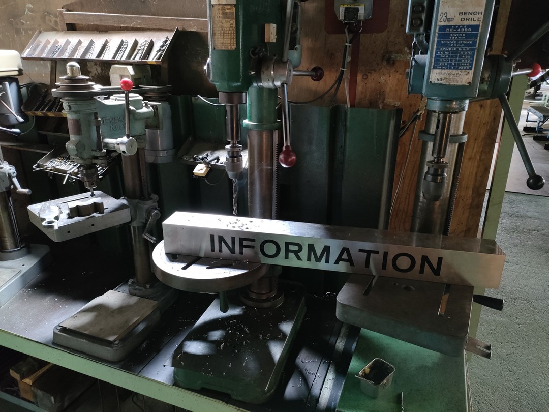 柱となる、INFORMATIONの角パイプに穴あけ作業。このINFORMATIONとなっている角パイプは、そのまま使う事にした!