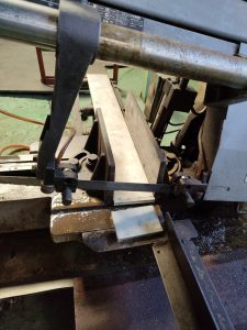 切断したフラットバーは、↓の場所に溶接する為に切断しました。これは、角パイプの強度を上げるために、背面にフラットバーを溶接しました。