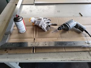 ステンのブラケットで、アルミフレームとステンレスの角パイプを組立。