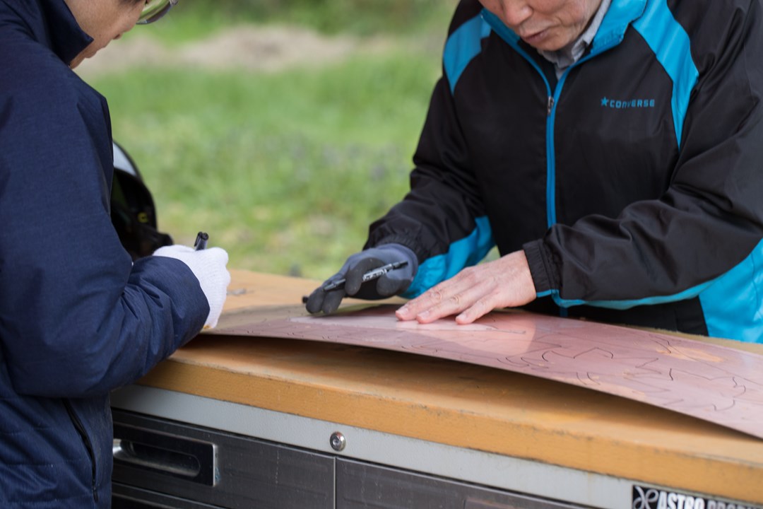 2026-02-10 / 最終更新日時 : 2026-02-10 空き地 アップサイクル プラズマ切断する為の、下書き作業。 私が、アップサイクル作品を作るようになるまでの事を、思い出しながら書くシリーズ。 2024.3.7 金属廃材の板に葉っぱを下書き。 そして、この描かれた線を、プラズマ切断機で切断していきます。 Tさんと、Tさん。 FacebookX コメントを残す コメントをキャンセルメールアドレスが公開されることはありません。 ※ が付いている欄は必須項目ですコメント ※ 名前 ※ メール ※ サイト 次回のコメントで使用するためブラウザーに自分の名前、メールアドレス、サイトを保存する。