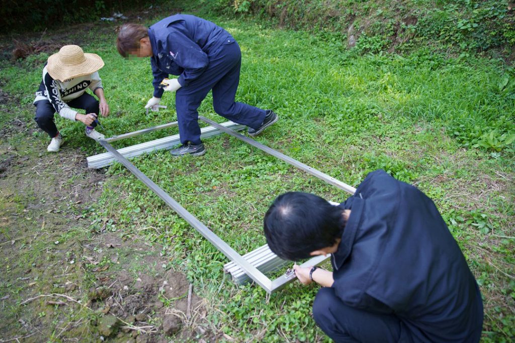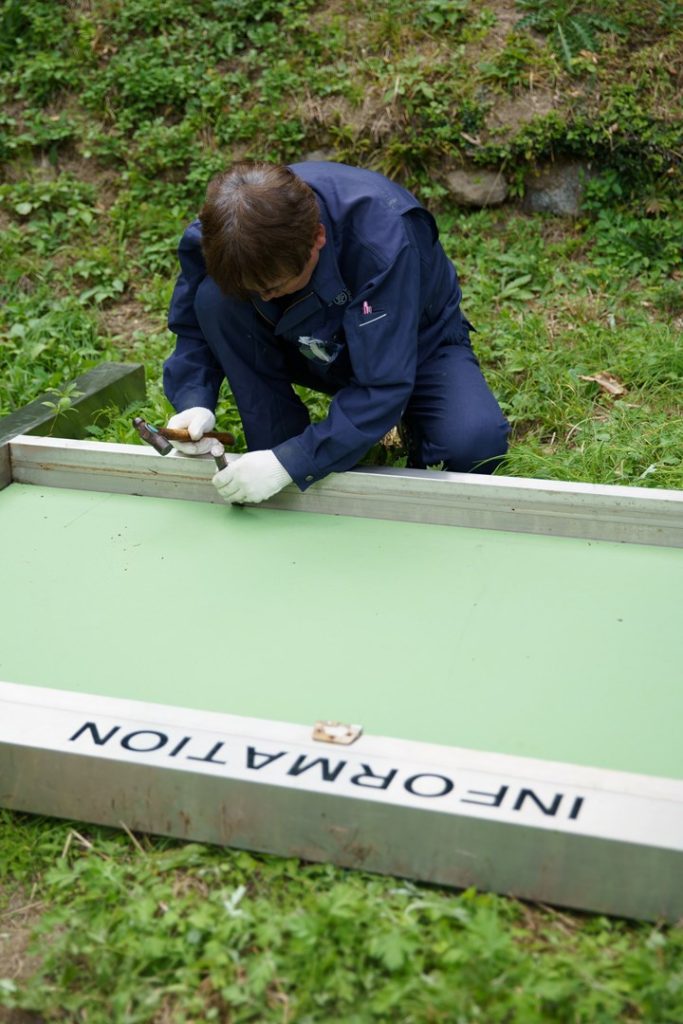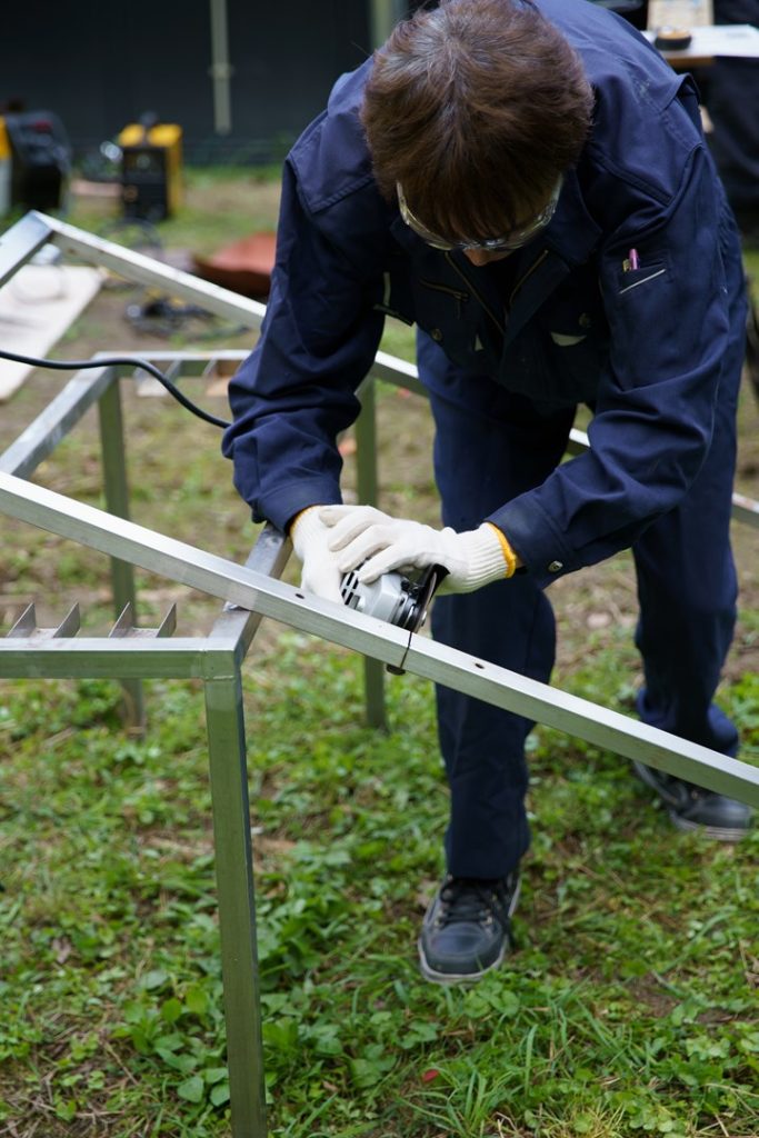 この日は、朝から、SRC本拠地での「こけら落とし」と、佐賀県立図書館へ設置する、アップサイクルの掲示板作りスタートしました。