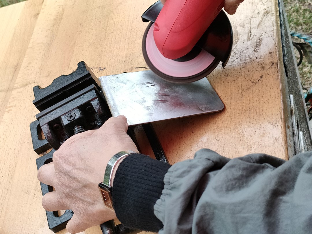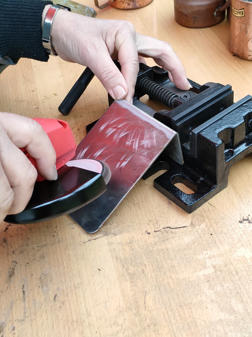N社長さんに、グラインダーを使っての表面に傷をつける技法を伝授しました。
