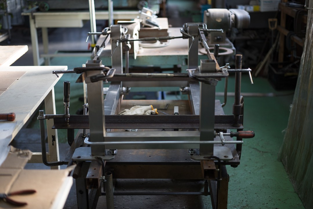 ステンレスのフレームの仮付け溶接。大牟田の諏訪公園へ行きました。
