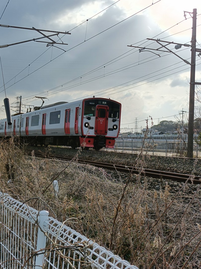 帰る途中で買い物に寄った駐車場からJR線が見えたので、しばし電車が通るのを待ってました。