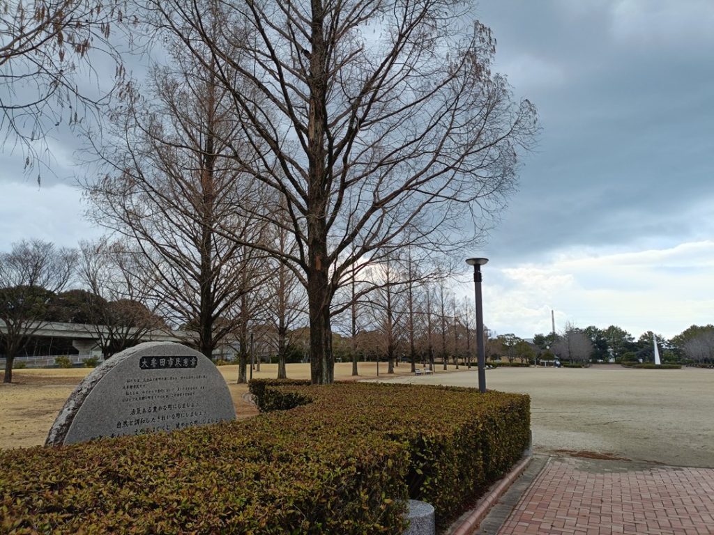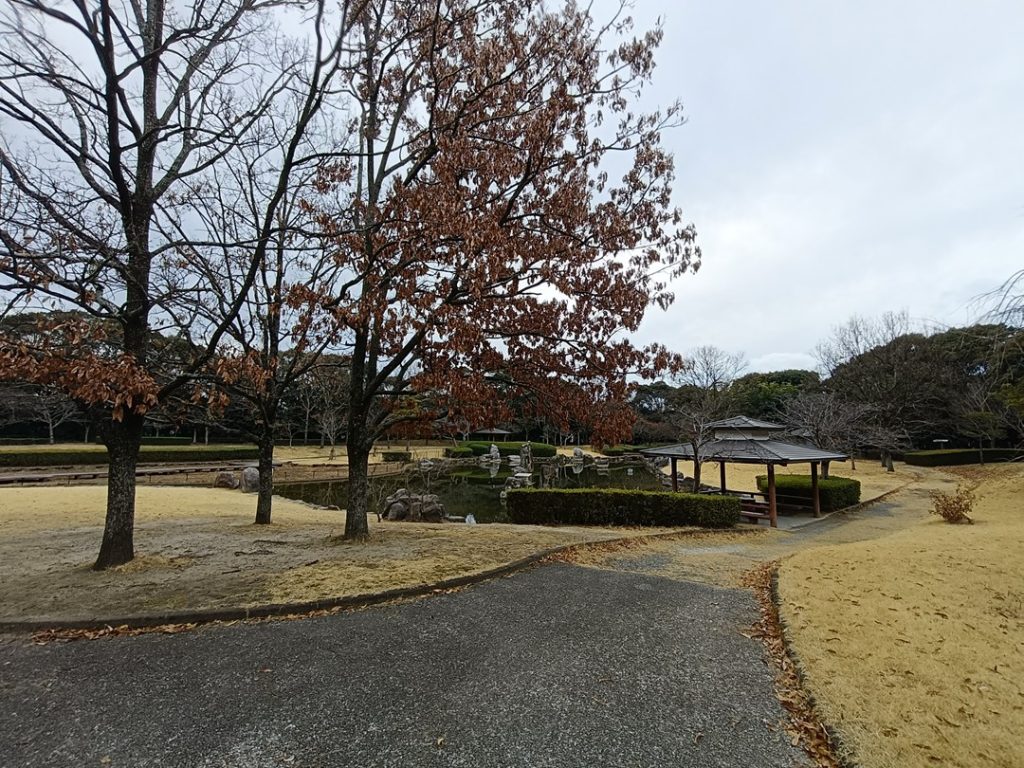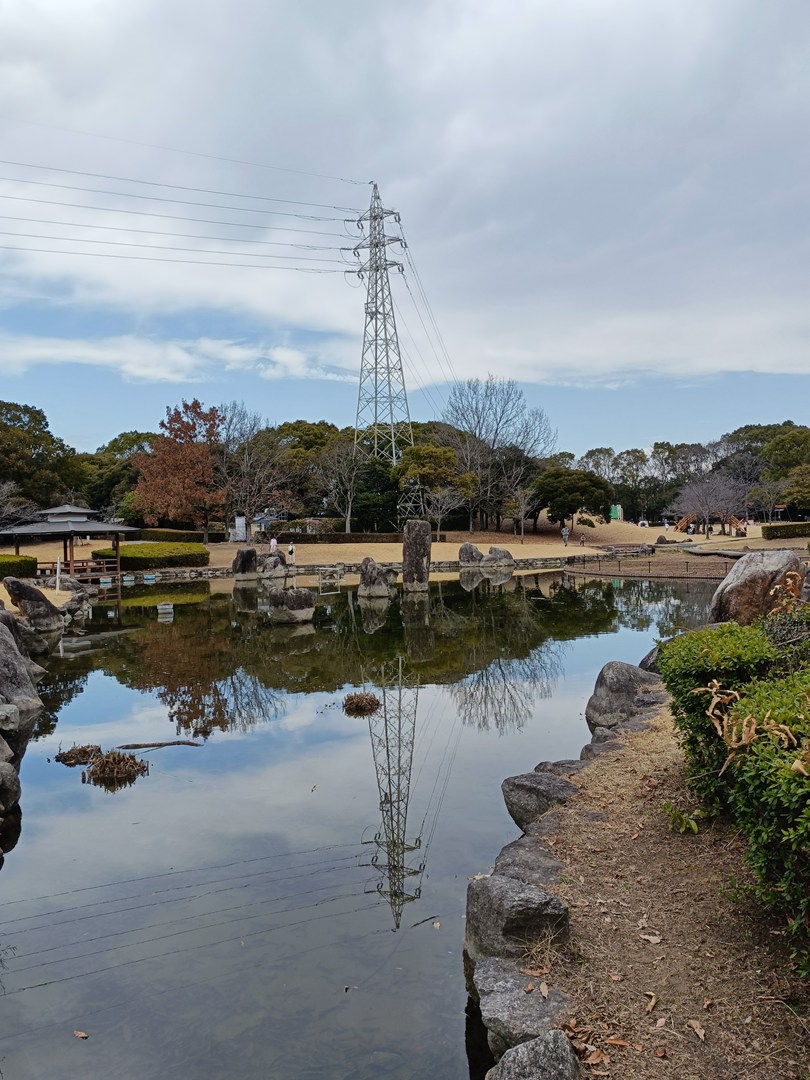 途中。大牟田の諏訪公園で孫と愛犬と遊んだり散歩しました。