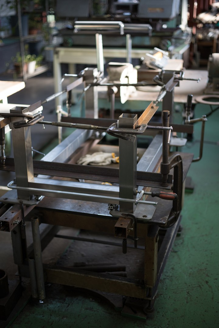 シャコマンで、アチラコチラを挟んで、寸法をだしている所。