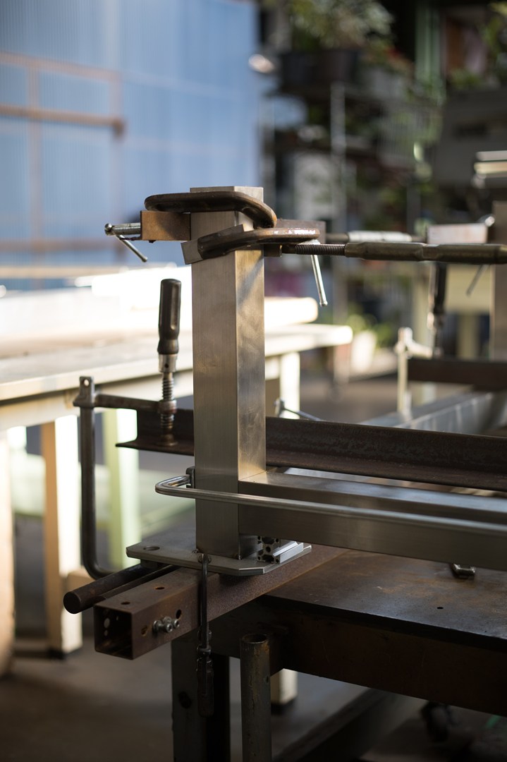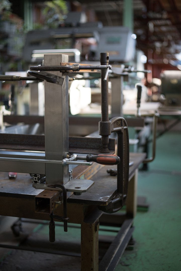 シャコマンで掴んで、寸法だし作業。
