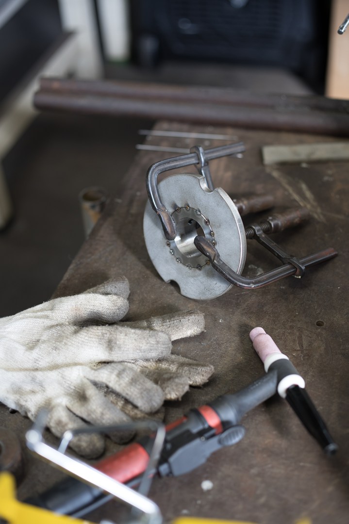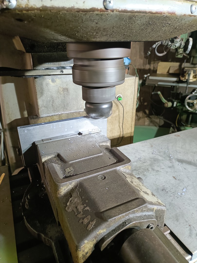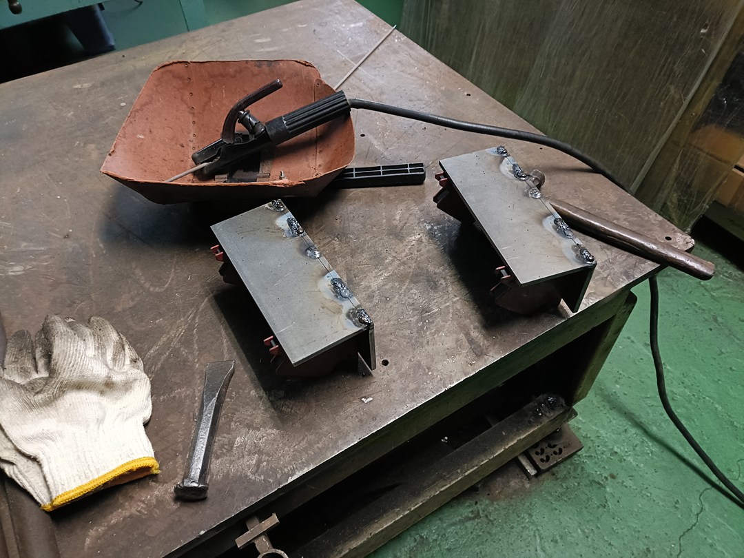 製作中ユニットの組立や、フライス盤でFB(フラットバー)を切削し、その後溶接しました。