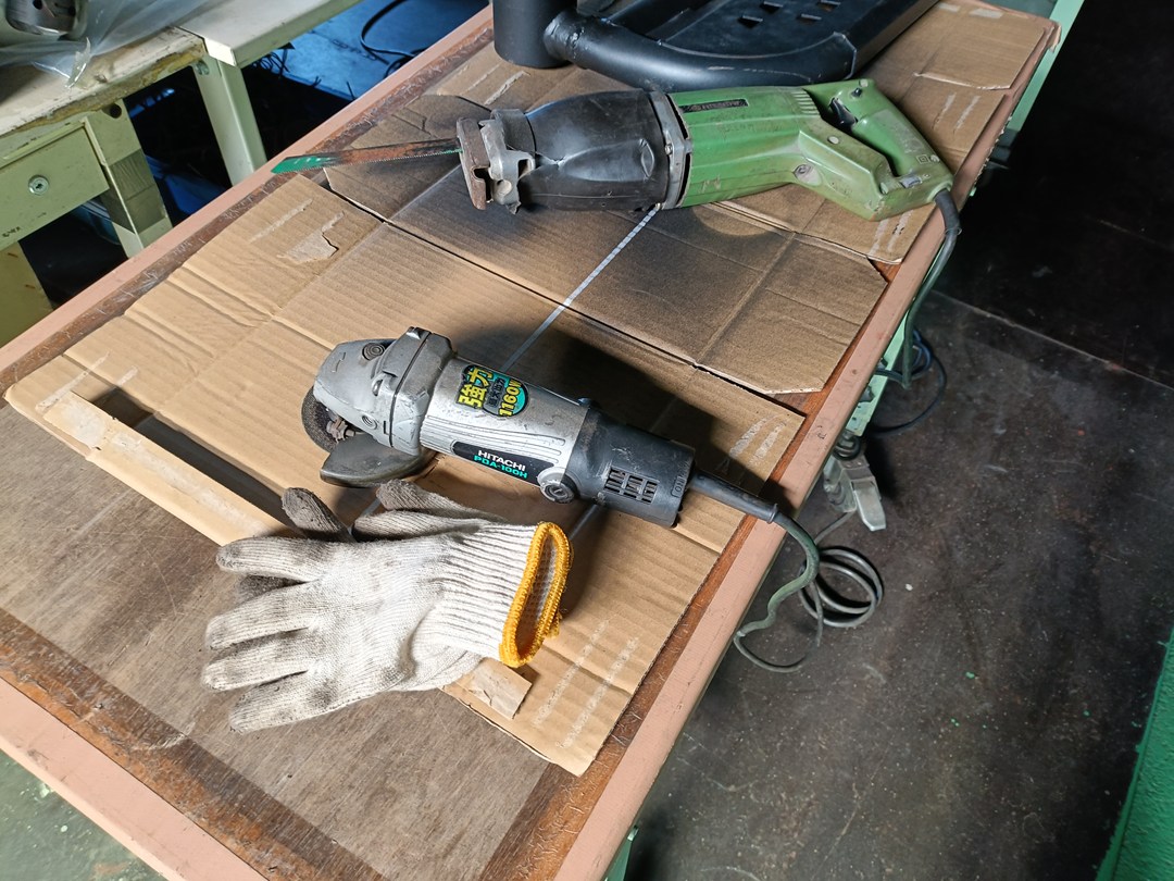 追加工のご依頼で、サンダーでカット。その後は、セイバーソーで切断。色んな機器を使い、要望に応えます。
