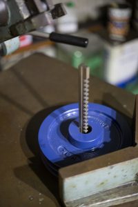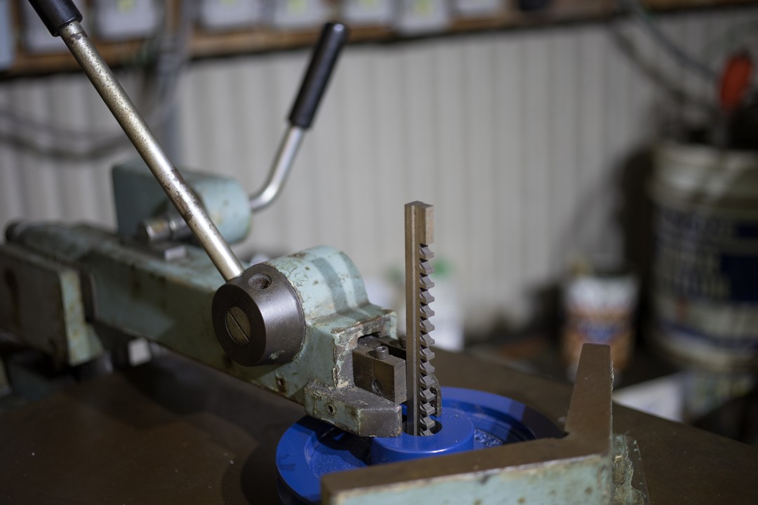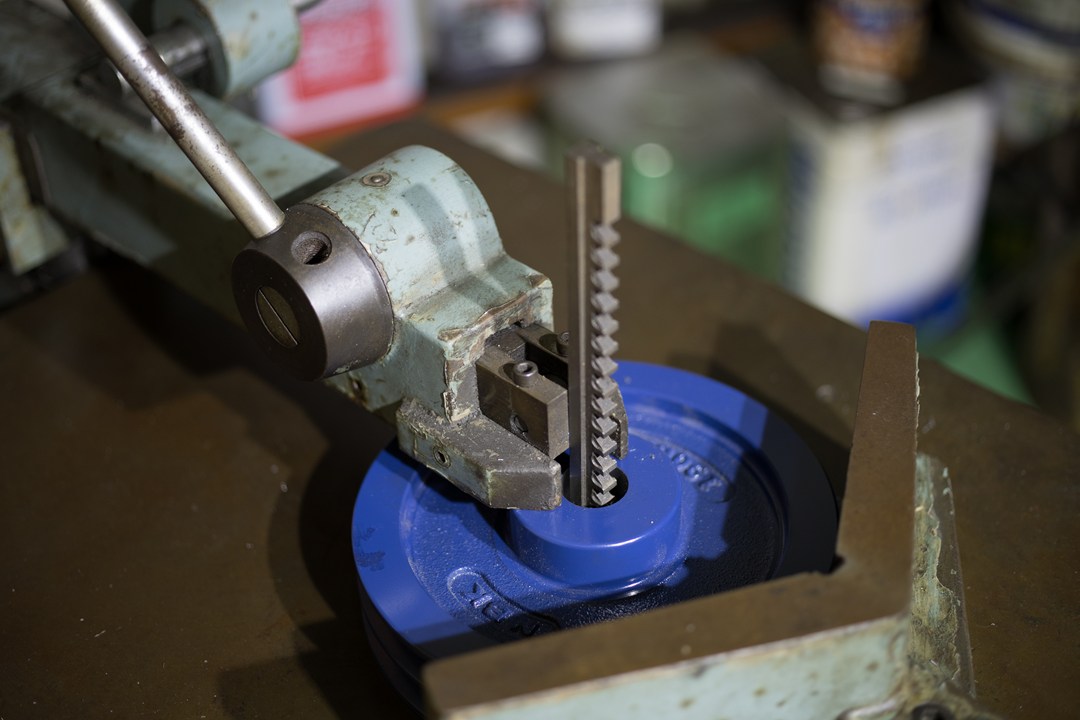 内径にキー溝を切ってます。ブローチと言う刃で切削していきます。