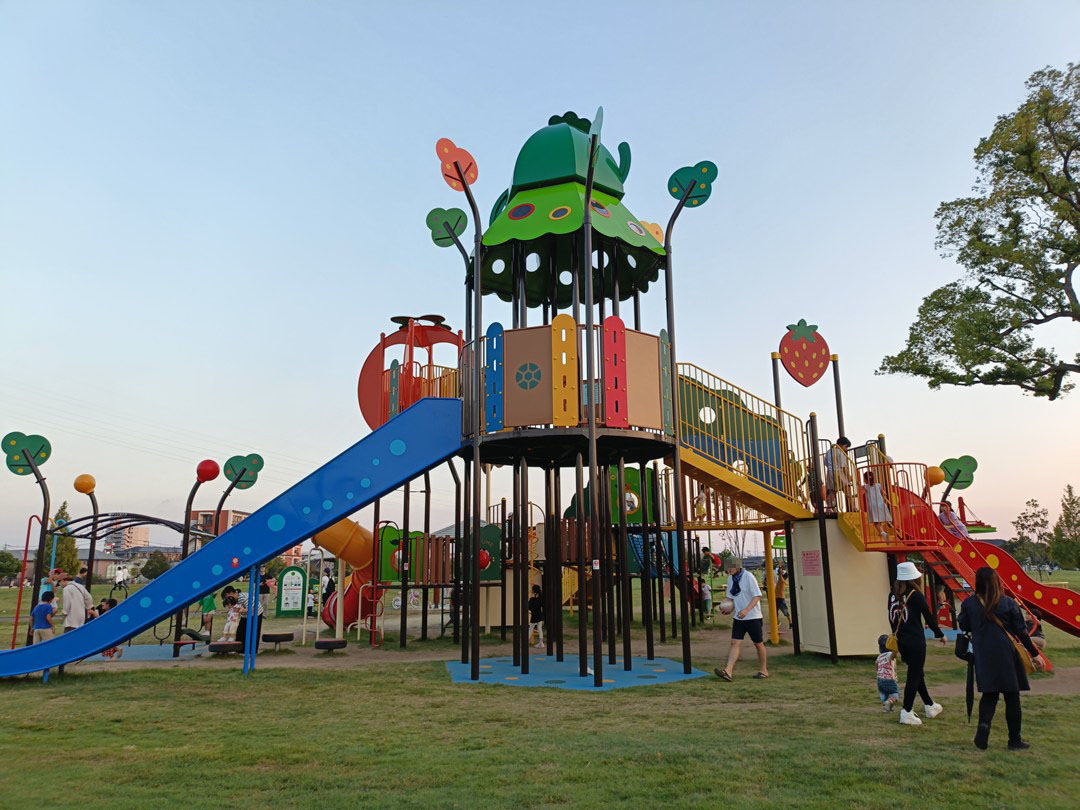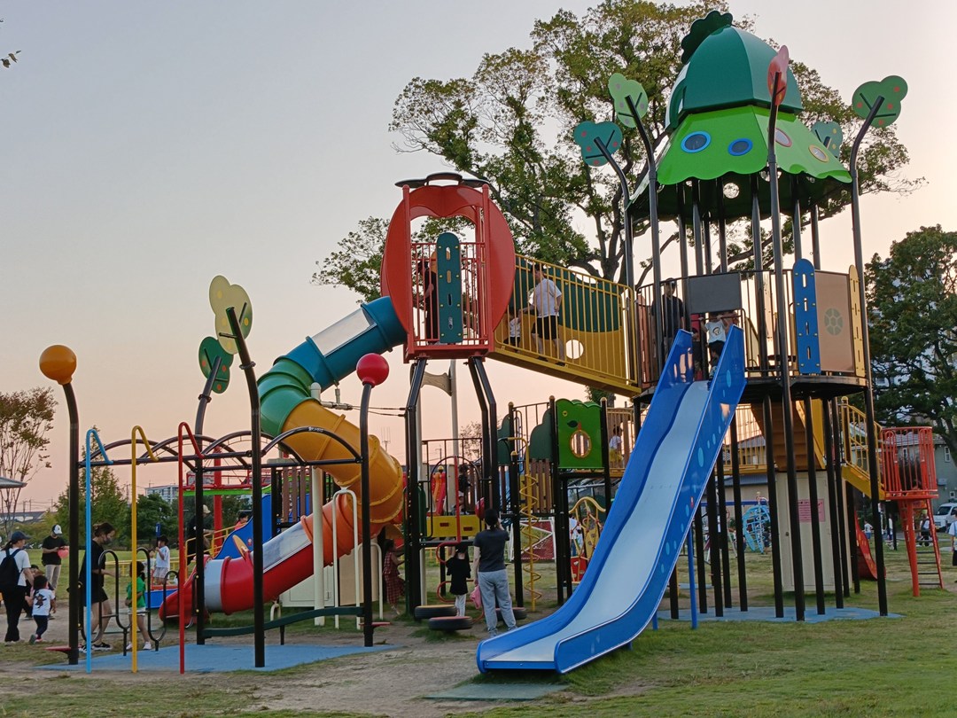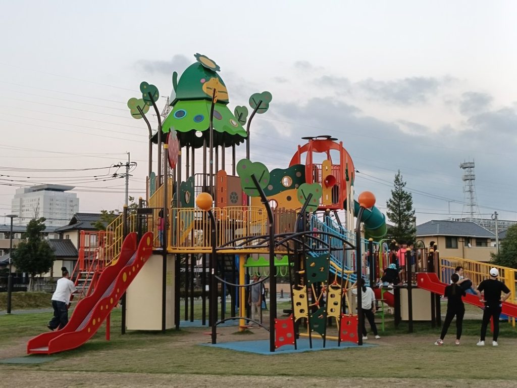 愛犬も、孫も不完全燃焼だったと思い、津福公園で遊ばせて帰りました。津福公園は、新しい遊具が完成していて、沢山の家族連れが遊んでいました。