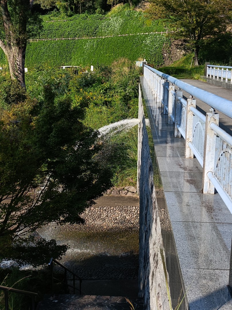 公園内に放送が流れていて、何だろう?と思ったら、端の上から水が出てました。