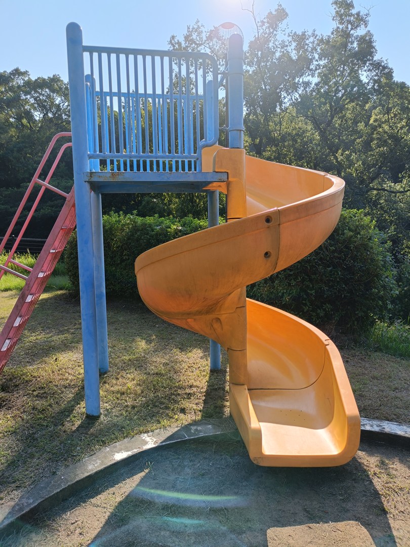 丘を登って、長い滑り台がある場所に到着したけど、雑草が伸びていたので・・・遊ぶのは辞めました。
