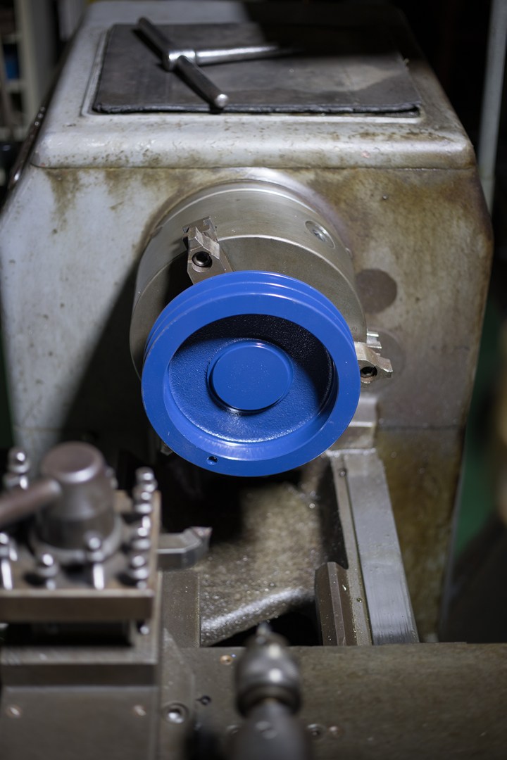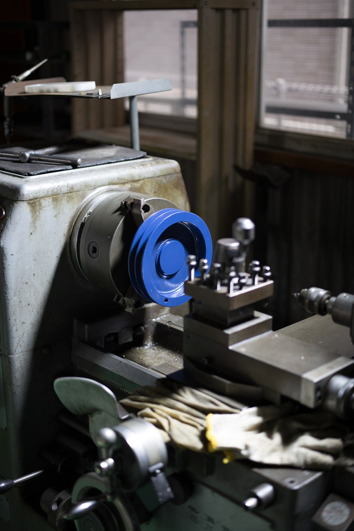 旋盤でプーリーを加工。ルビーネックレスの小さくて黄色い可愛らしい花。
