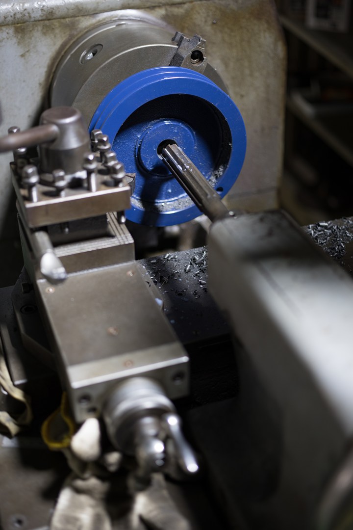 Vプーリーの内径をリーマ加工