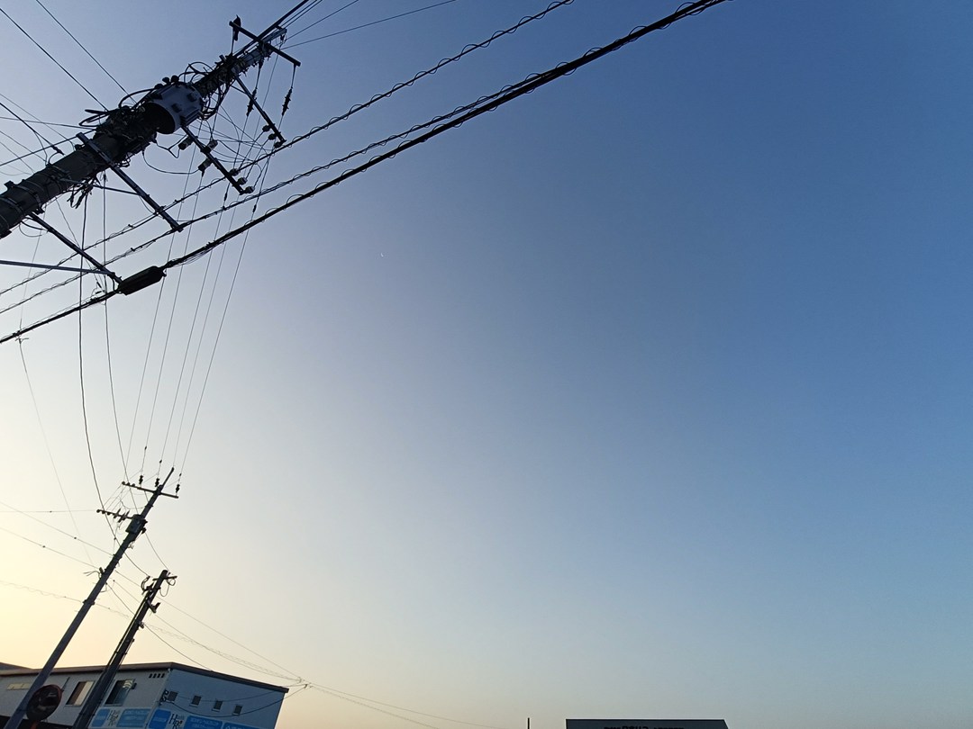 写真の真ん中の、チョイ左上あたりに、白い点。が見えます。これ、三日月でした!
