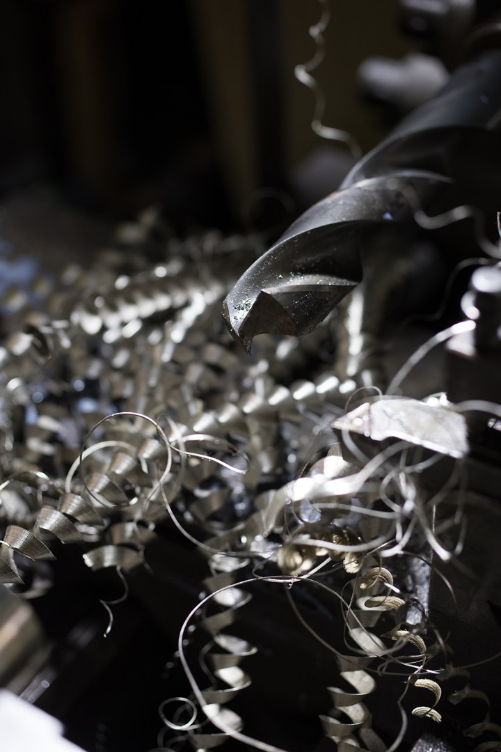 ステンレスの切り粉(ダライコ)。日曜は配管工事を実施しました。