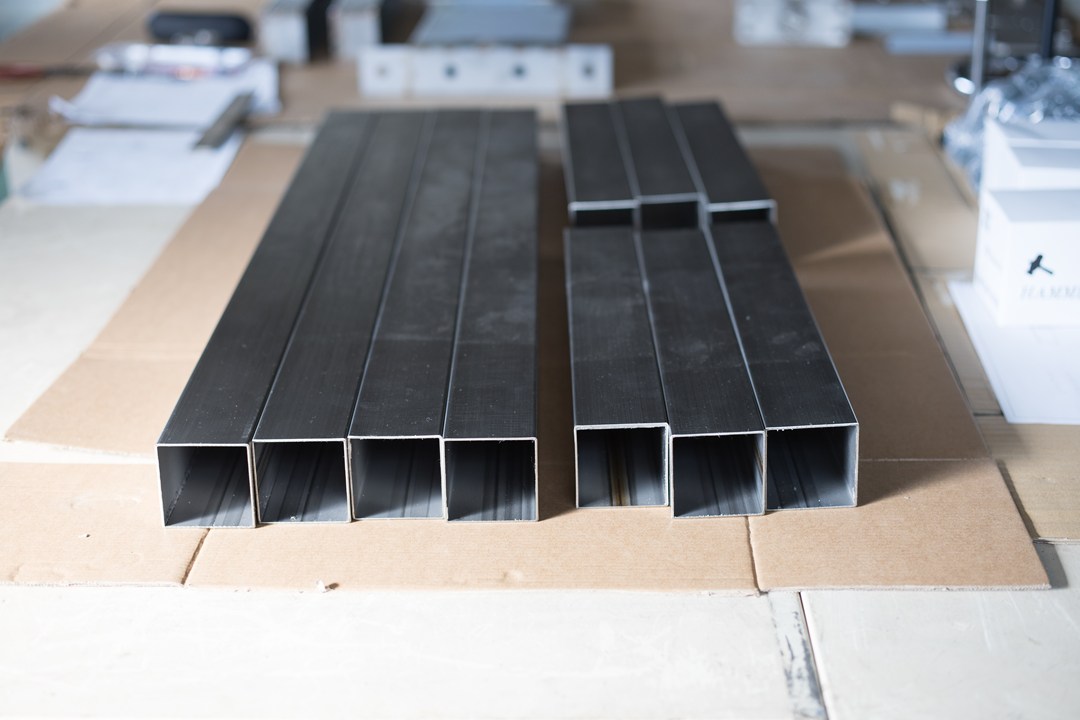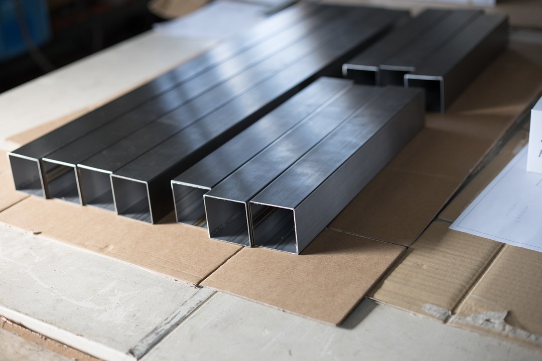 ステンレスの角パイプ。