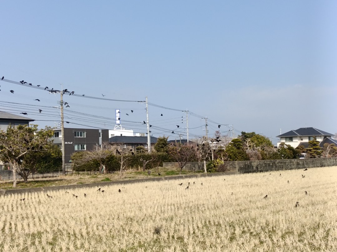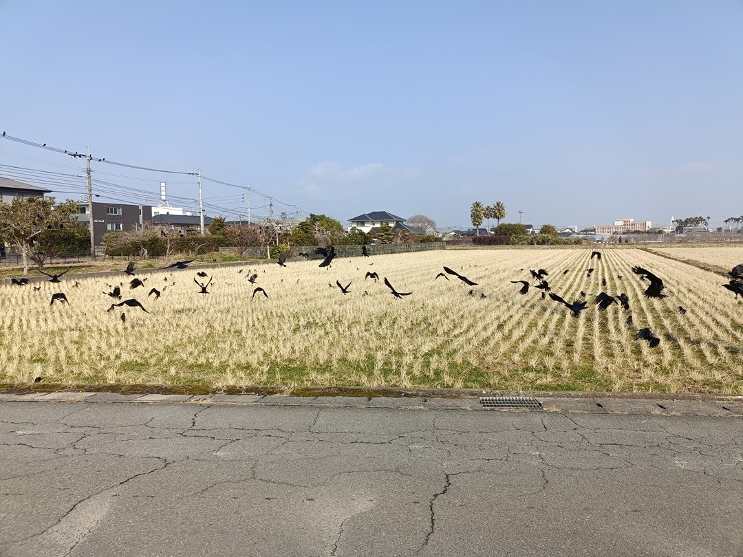 信号待ちをしていて、田んぼを見ると・・・凄い数のカラスの大群!