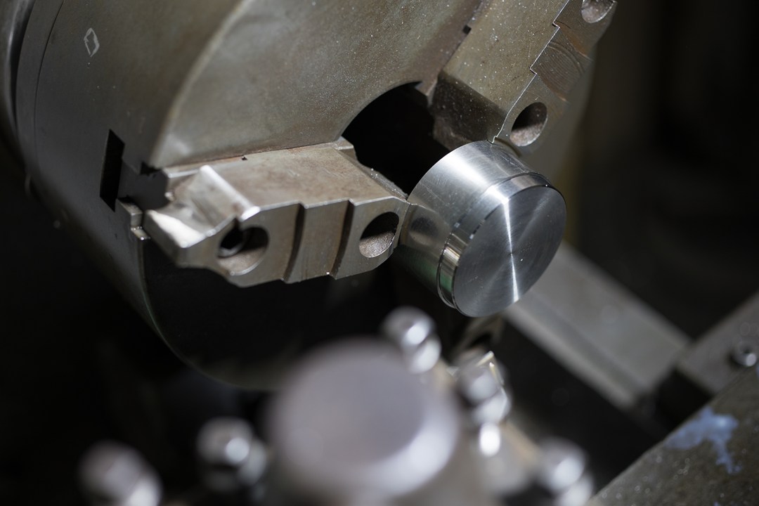 先ずは、側面と外径を削って、次は、ひっくり返します。