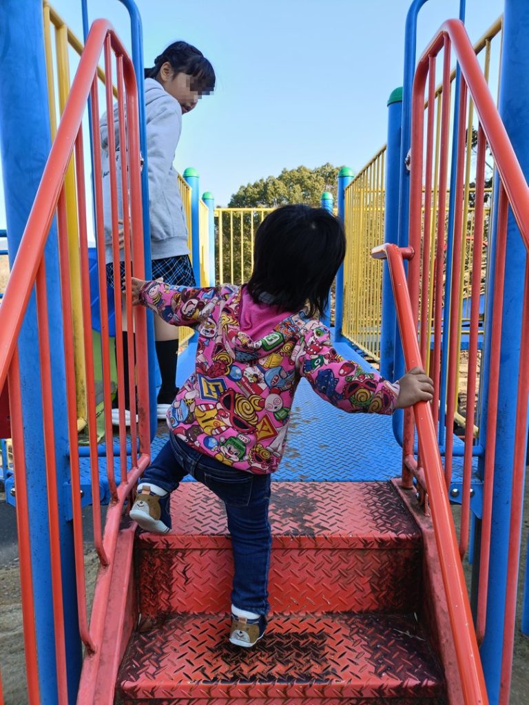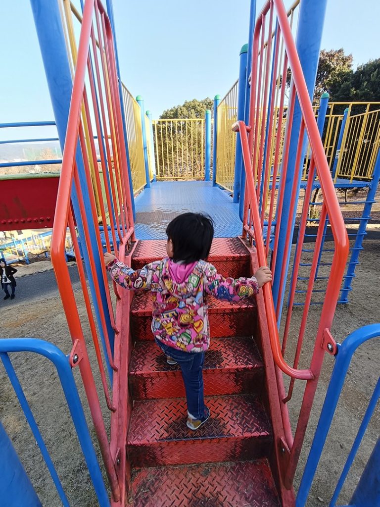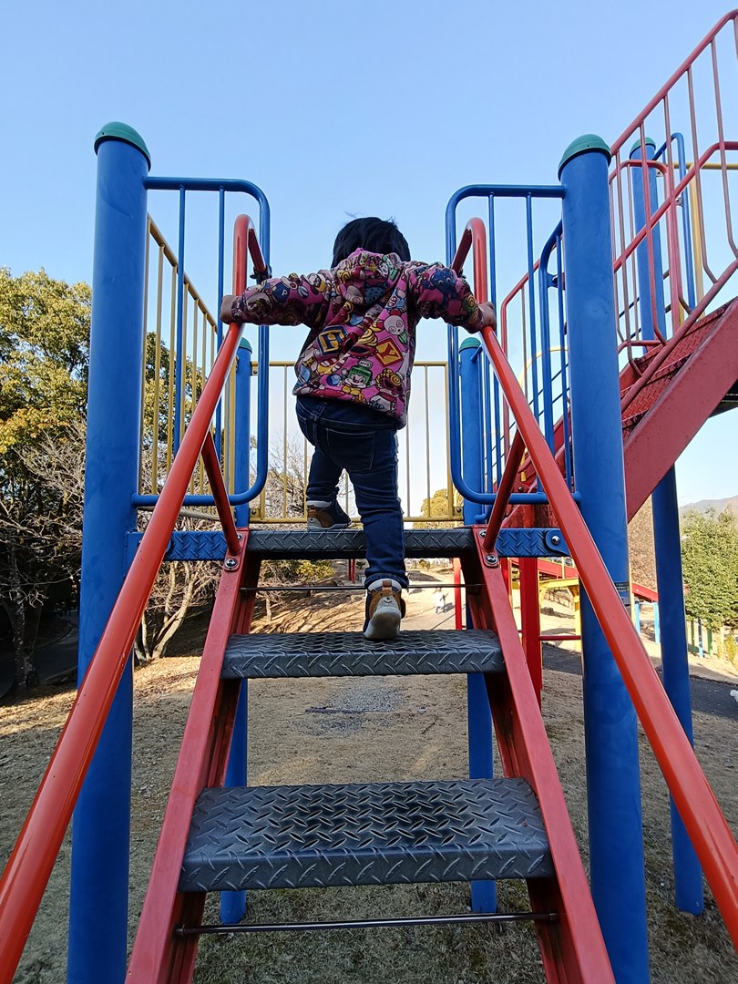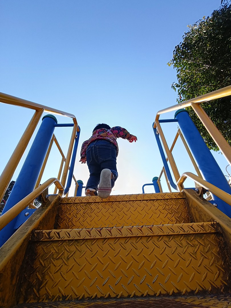 滑り台で降りたら、今度は、また・・・上まで昇ってる所。